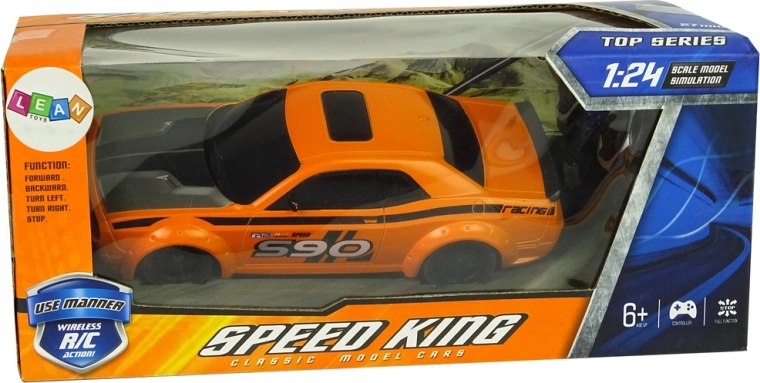 Geniet van snelle ritten met een realistische RC-auto op schaal 1:24. Licht en duurzaam ontwerp, sportief design, opvallende oranje kleur en eenvoudige besturing vooruit/achteruit en naar de zijkanten voor zowel kleine als grote racers. Ideaal speelgoed voor de ontwikkeling van de fijne motoriek en coördinatie.