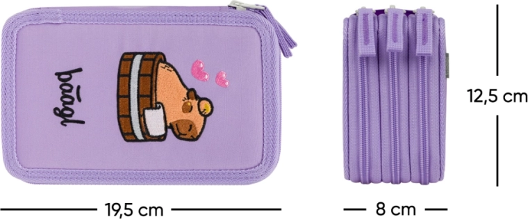 Houd al je schrijfwaren overzichtelijk op één plek. De driedelige schooletui van Baagl met capibara‑motief is ideaal voor leerlingen die meer ruimte nodig hebben en kwaliteit waarderen. Dankzij de doordachte indeling passen kleurpotloden, stiften, pennen en andere benodigdheden er comfortabel in.