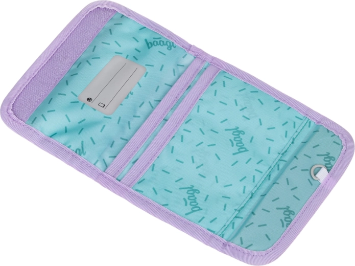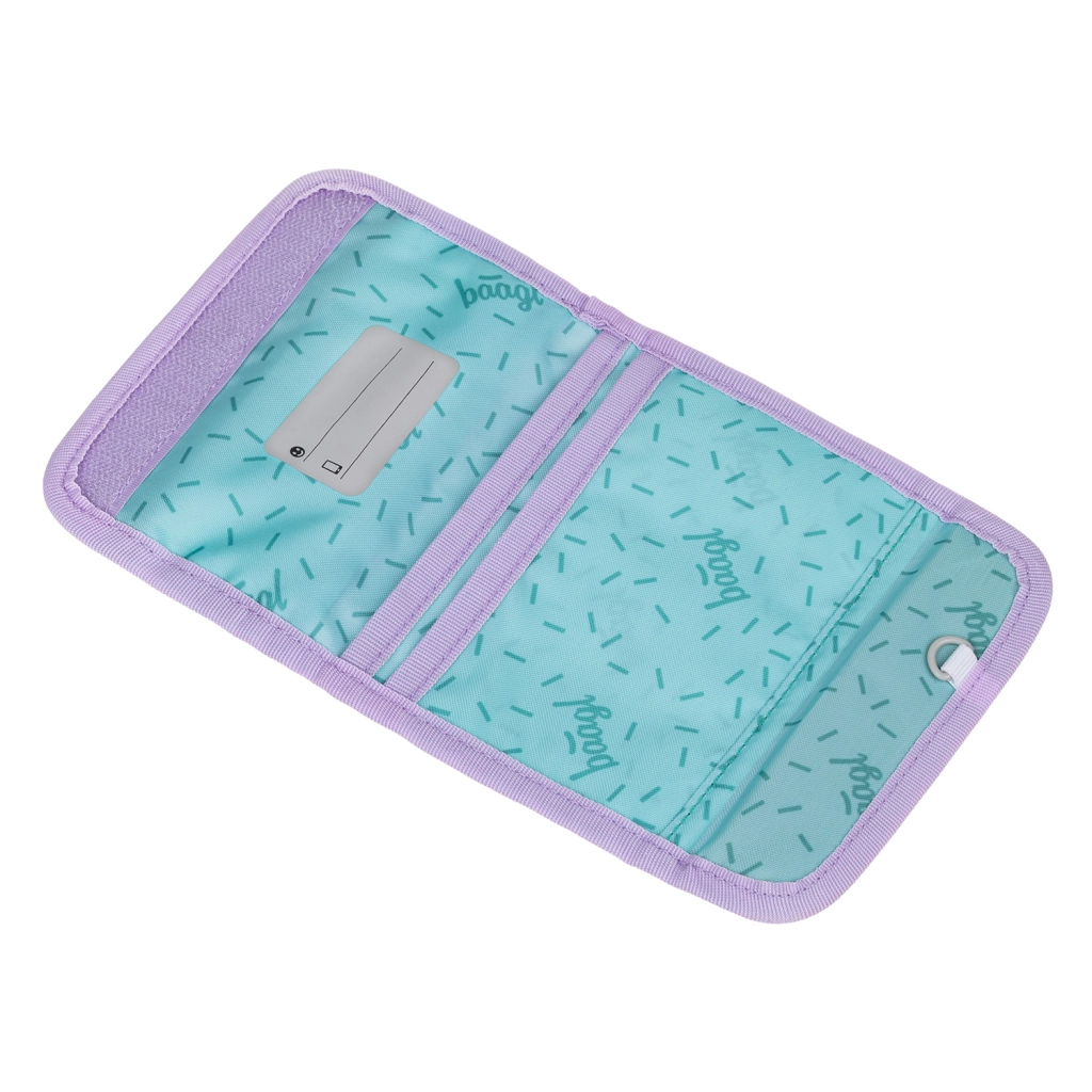 De praktische BAAGL Lavender portemonnee is ideaal voor kinderen, zowel voor school als vrije tijd. Dankzij het dragen om de nek hebben kinderen alles wat belangrijk is altijd bij de hand en veilig opgeborgen. De binnenindeling met kaartvakken en naamlabel helpt bij het behouden van overzicht, terwijl het voorste ritsvakje muntjes en kleine spullen bewaart.