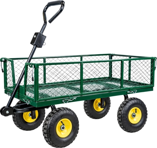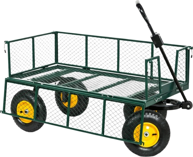 Zoekt u een veelzijdige hulp voor werk in de tuin, op de bouw of in de werkplaats? Deze stalen tuinkar met een draagvermogen van 200 kg kan aarde, hout, stenen en gereedschap aan. De stabiele vierwielige constructie met luchtbanden dempt oneffenheden op gras, grind en bestrating, terwijl de draaibare vooras zorgt voor nauwkeurig sturen, ook bij volle belading.