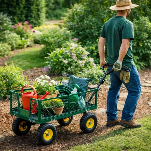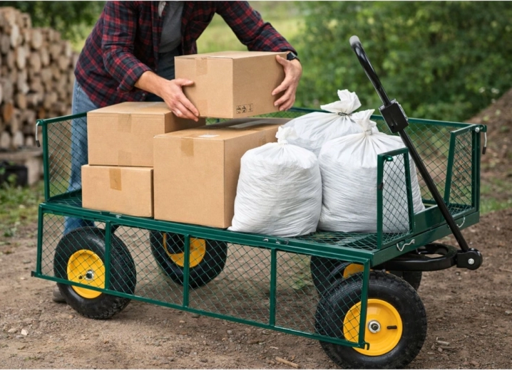 Dankzij de neerklapbare en afneembare zijwanden gaat laden snel en veilig, terwijl de ergonomische handgreep met zacht foam het comfort verhoogt bij langdurig gebruik. Na het werk kan de kar snel worden ingeklapt en eenvoudig worden opgeborgen, zelfs in kleinere ruimtes.