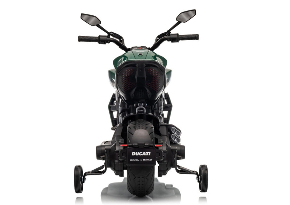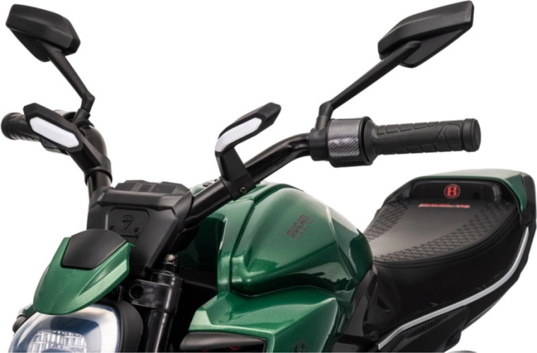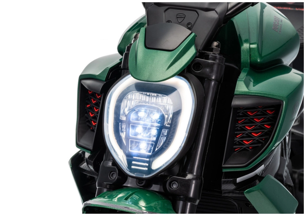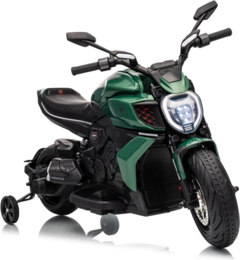 Stijlvolle elektrische kindermotor geïnspireerd op het model DUCATI DIAVEL V4 biedt kinderen veilige pret en hun eerste rijervaringen. Dankzij de zijwieltjes is de rit stabiel en geschikt voor beginners. De motor biedt realistische details, helder LED-licht en comfortabele bediening met het stuur. Ideaal voor buitenspelen en het ontwikkelen van balans en coördinatie. Stabiliserende zijwieltjes, LED-koplamp, realistisch design en batterijaandrijving zullen kleine racers en hun ouders bekoren.