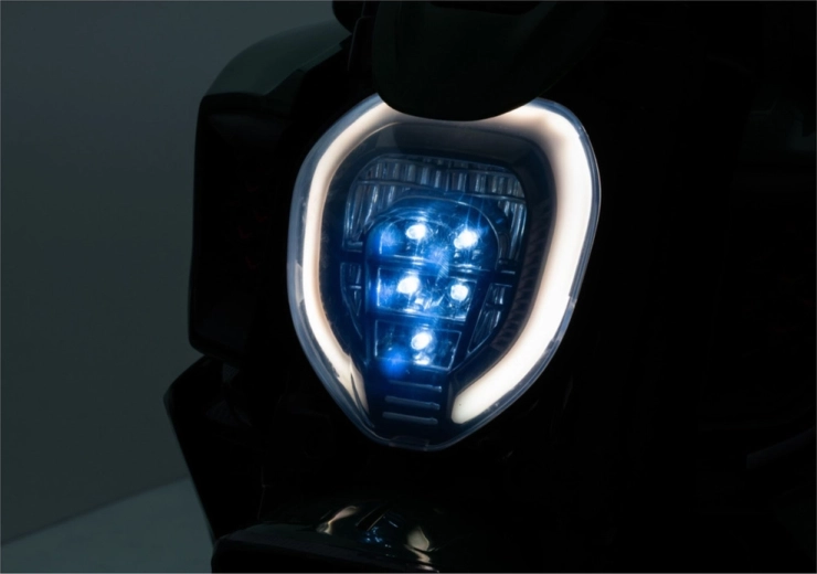 De geïntegreerde LED-koplamp verhoogt de zichtbaarheid en geeft de motor een realistische look van een sportieve straatmotor.