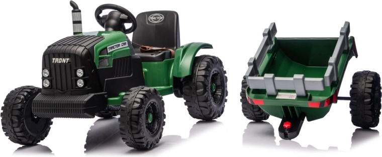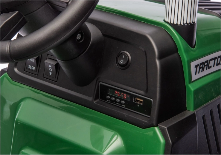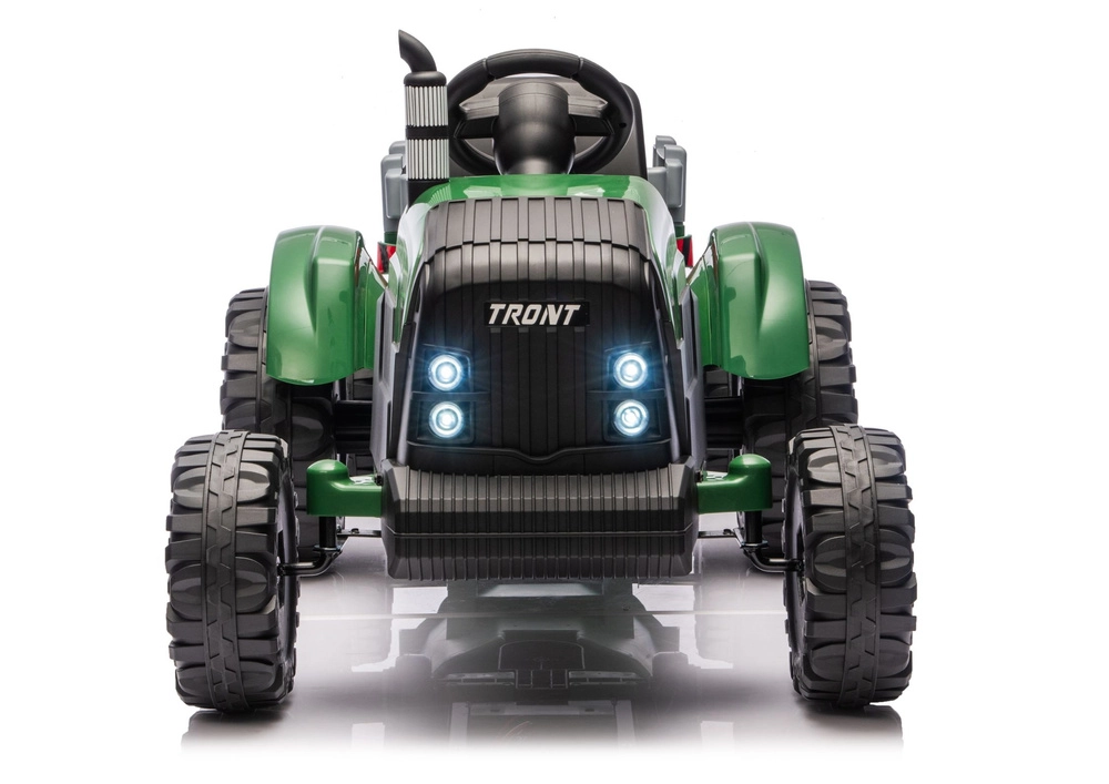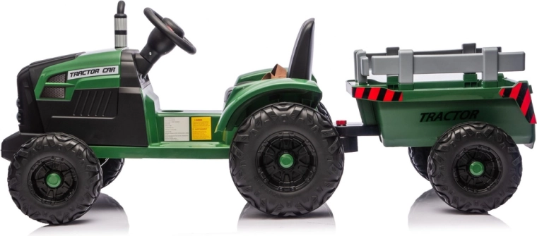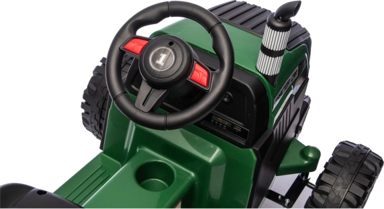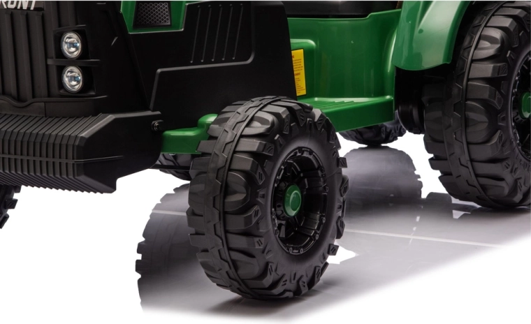 De elektrische looptractor combineert stabiliteit, veiligheid en realistische details – van de opvallende voorgrille met LED-verlichting tot het diepe profiel van de wielen voor betrouwbare grip op zowel harde als licht oneffen ondergrond. De zitting met veiligheidsgordel en rugleuning zorgt voor extra comfort, ook tijdens langere ritten.