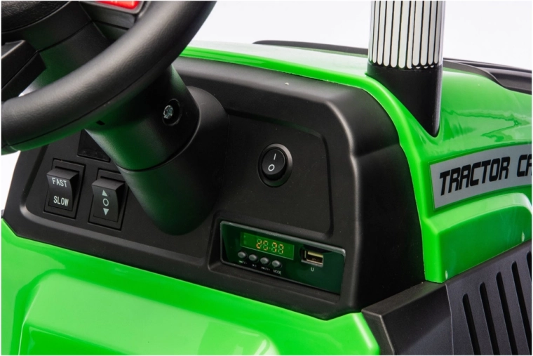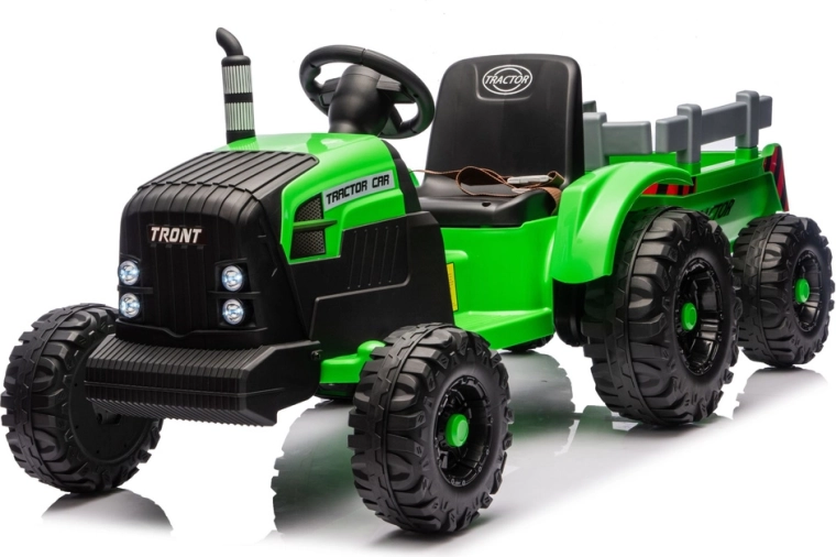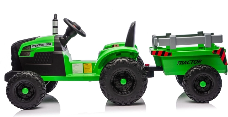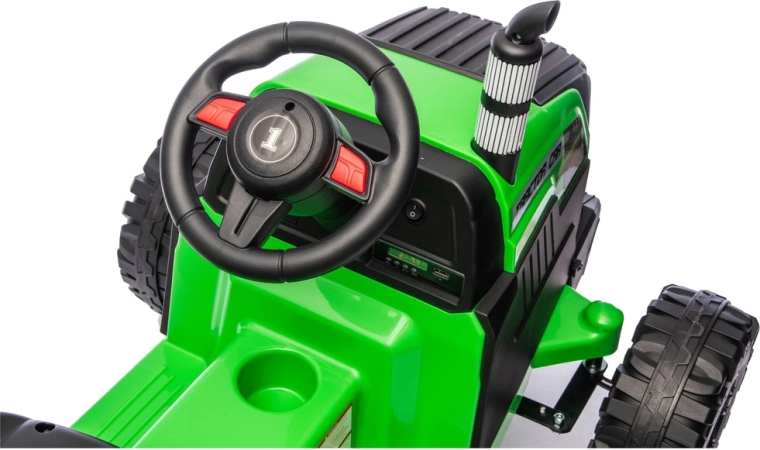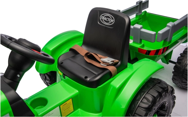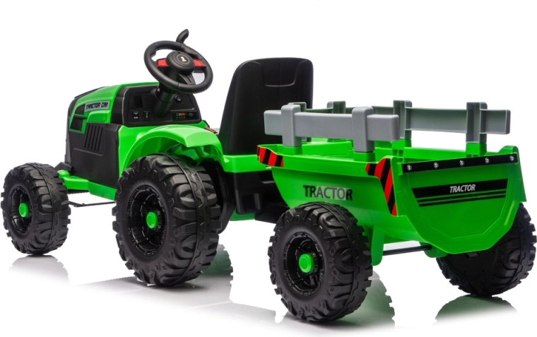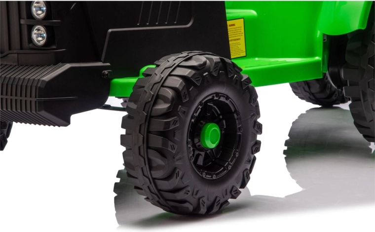 Geniet van een realistische rijervaring met deze elektrische tractor die plezier, veiligheid en praktische bruikbaarheid combineert. Dankzij de 24V-voeding en de robuste wielen met diep profiel kan hij over oneffen terrein op het erf en in het park. De afkoppelbare aanhanger maakt het kinderen makkelijk om speelgoed, bladeren of kleine schatten te vervoeren.