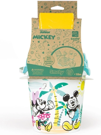 De ecologische zandset SMOBY uit de Green-lijn biedt kinderen veel plezier thuis en op het strand. Bevat een emmer met licentie van MICKEY MOUSE en MINNIE, een schep en hark, een zandvormpje in de vorm van een boot en een gieter. Gemaakt van plantaardige bioplastic van suikerriet met duurzame IML-print.