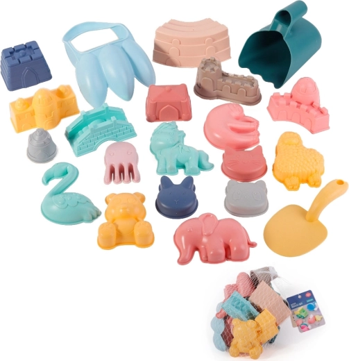 De zand-speelset van het merk WOOPIE biedt 21 stuks in een prachtig pastelontwerp – ideaal voor in de zandbak, op het strand en in de tuin. Bevat 18 vormpjes en 3 verschillende schepjes. Gemaakt van flexibel siliconenmateriaal. Geschikt voor kinderen vanaf 3 jaar.