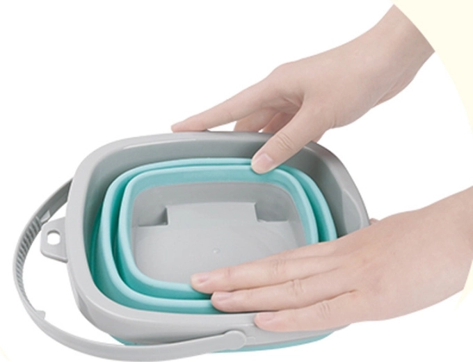 De emmer vouw je eenvoudig plat – perfect voor in een rugzak, kinderwagen of strandtas. Ideaal voor op reis.