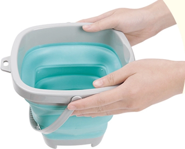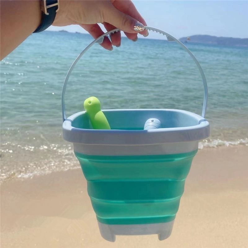 Dankzij de combinatie van stevige kunststof onderdelen (rand, bodem, handgreep) en flexibel siliconen is de emmer licht, duurzaam en veilig voor kinderen. De grotere capaciteit van 5 l is ideaal voor water en zand; in opgevouwen toestand is de emmer slechts ca. 4 cm hoog en uitgeklapt ca. 16 cm.
