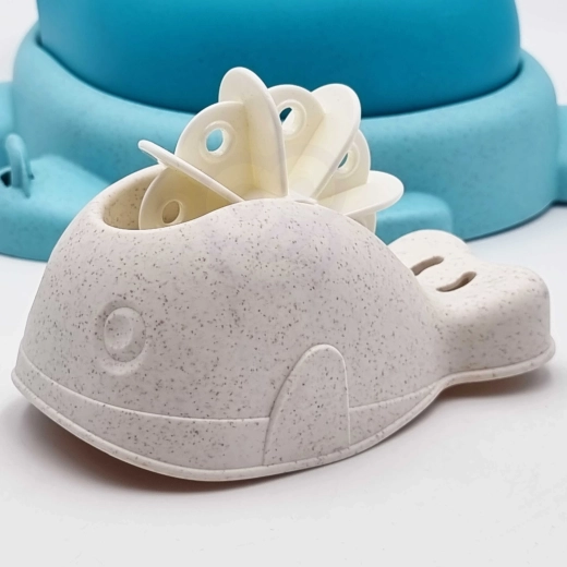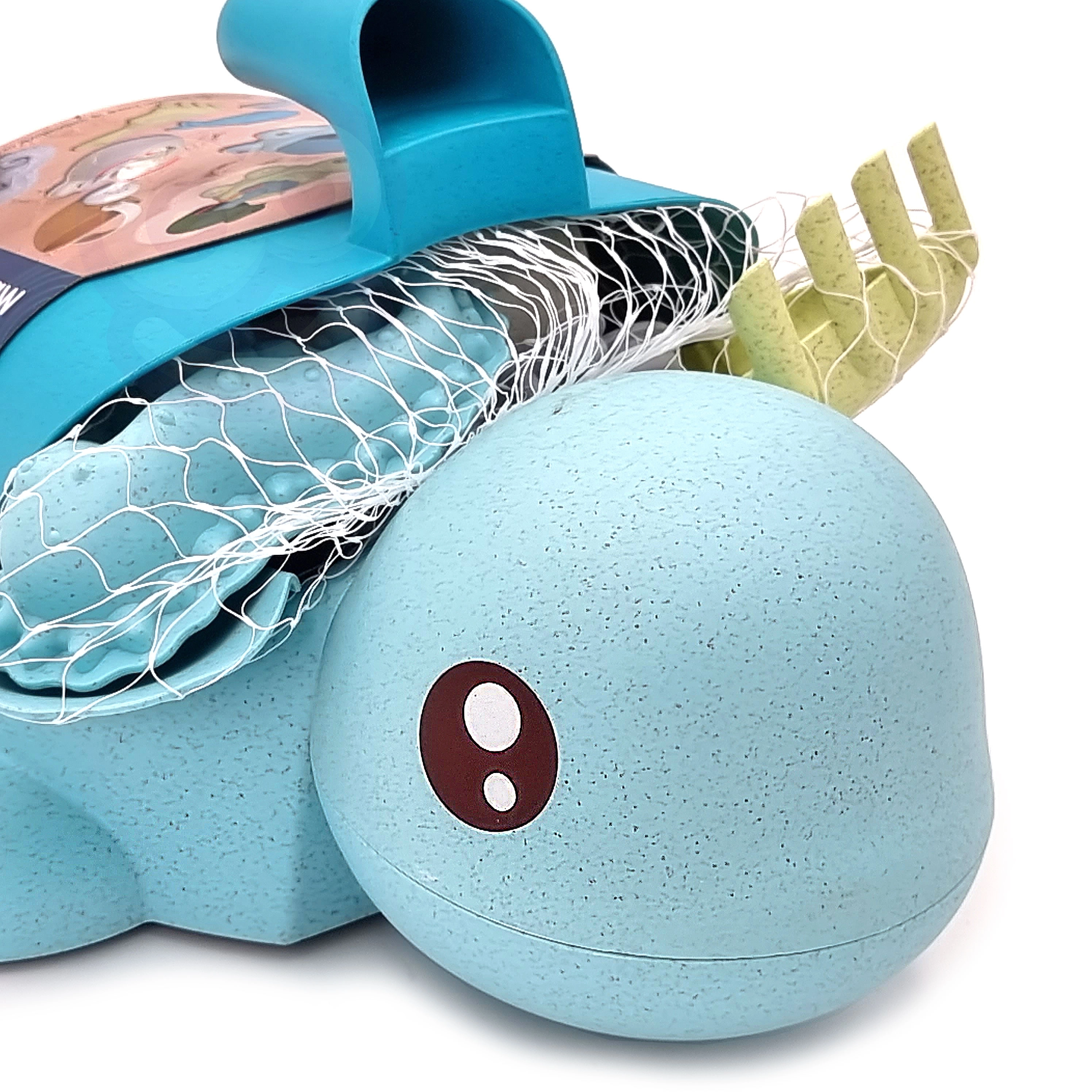 Het schildpadlichaam dient als opbergbox voor alle onderdelen en dankzij het handvat neem je het comfortabel mee naar het strand, het park of de badkamer.
