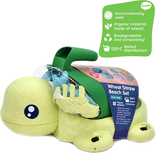 De Woopie Green schildpadset is ideaal om te spelen in de zandbak, op het strand, in de tuin en in het bad. Dankzij het duurzame maar lichte materiaal van tarwestro ligt de set prettig in de hand, is hij veilig voor kinderen en bovendien eco‑friendly. De schildpadmand en accessoires zijn gemakkelijk te dragen en op te ruimen en stimuleren creativiteit en fijne motoriek.