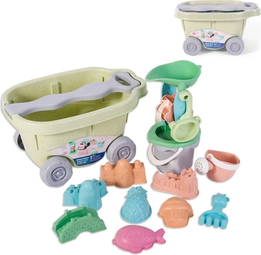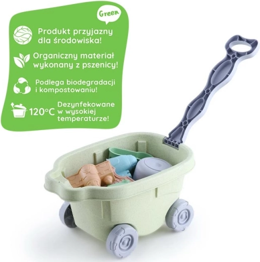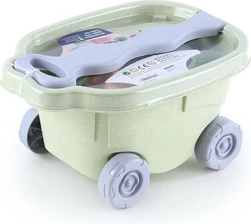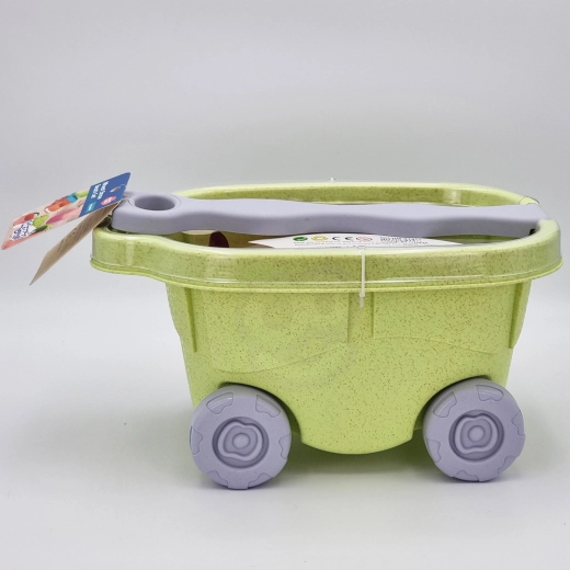 Een licht kunststof wagentje met een robuust handvat en wieltjes helpt kinderen speelgoed, zand en water te vervoeren. Stimuleert zelfstandigheid en geeft het spel een nieuwe dimensie.