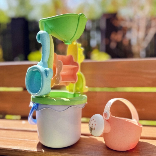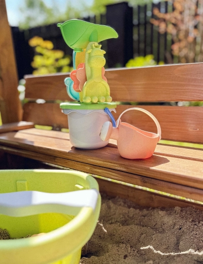 De set is gemaakt van organisch, biologisch afbreekbaar materiaal en is composteerbaar, dus vriendelijk voor de natuur. Gladde, afgeronde randen en een lichte constructie bevorderen veilig spel en ondersteunen de ontwikkeling van fantasie en fijne motoriek.