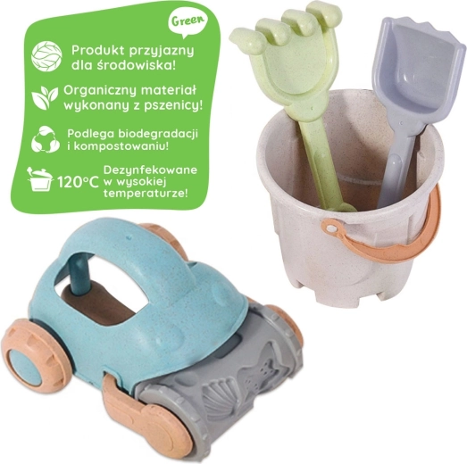 Deze ecologische zandset van het merk WOOPIE is gemaakt van organisch materiaal op basis van tarwevezels, dat biologisch afbreekbaar en composteerbaar is. Dankzij de duurzame uitvoering, afgeronde vormen en het lichte ontwerp is hij ideaal voor kleine kinderhanden en veilig buitenspelen.