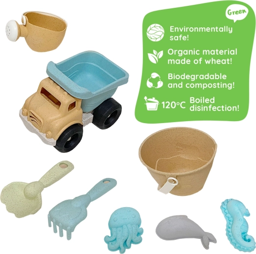 Ontdek milieuvriendelijk zandplezier met de WOOPIE GREEN set. Deze 8-delige set in pasteltinten is gemaakt van organisch, volledig biologisch afbreekbaar materiaal en is composteerbaar. Dankzij de comfortabele handgrepen op de emmer en de gieter is hij makkelijk te dragen. Het speelgoed is veilig voor kinderen – het is gedesinfecteerd bij 120 °C – en ideaal voor in de zandbak, op het strand en in de tuin.