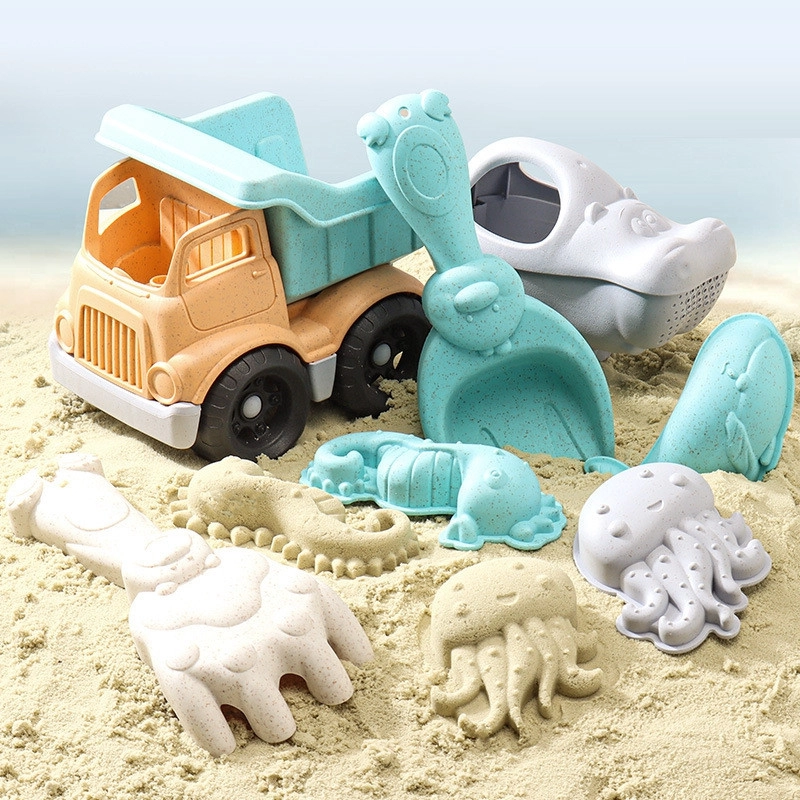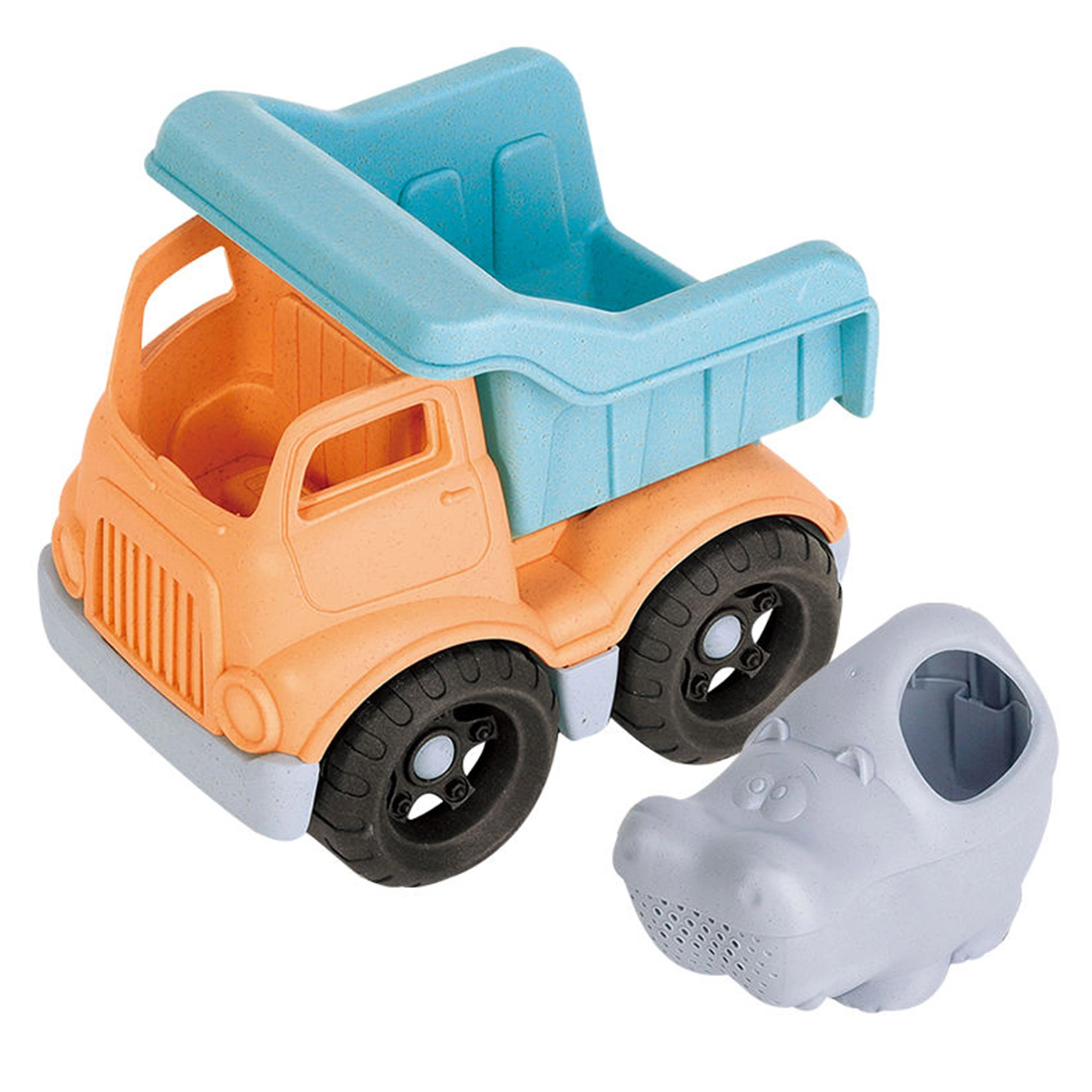 De praktische kiepwagen met kantelbare bak, de schattige gieter in de vorm van een nijlpaard, een schep, een hark en drie zeedier-vormpjes zorgen voor uren speelplezier met bouwen, verplaatsen en creëren. Spelen met de set ontwikkelt fijne en grove motoriek, oog-handcoördinatie, ruimtelijk inzicht en sociale vaardigheden.