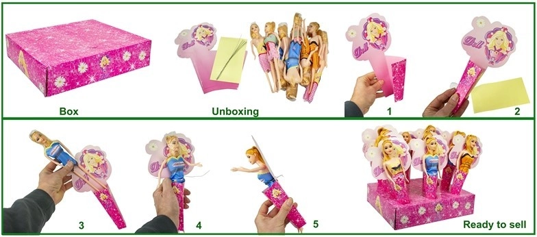 - Verkrijgbaar in verschillende varianten (kleuren, outfit, kapsel – volgens het actuele aanbod)