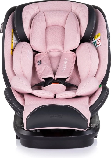 De Hypnotic i-Size autostoel in de elegante kleur Pink Marshmallow groeit mee met je kind vanaf de geboorte tot 150 cm. Voldoet aan de strenge norm R129 (i-Size), biedt achterwaarts vervoer tot 105 cm en eenvoudige bevestiging met ISOFIX en Top Tether. De 360° draaibare basis vergemakkelijkt het instappen en het wisselen van rijrichting.