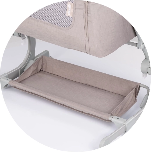De 2-in-1 functie laat je ELEGANZA gebruiken als losstaand bedje of als co-sleeper. Drie hoogteposities zorgen voor perfecte uitlijning met je bed voor comfortabel nachtelijk voeden en het geruststellen van je baby.