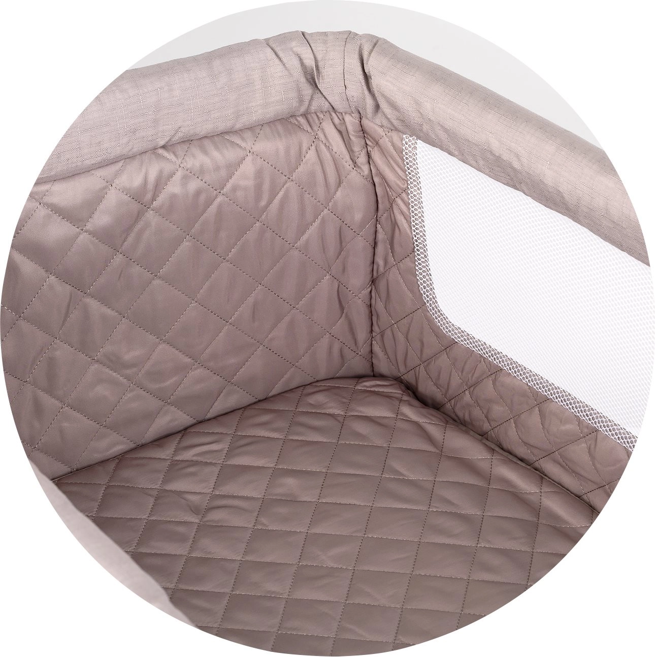 Elegante co-sleeper naast het ouderlijk bed, die je in een handomdraai verandert in een losstaand bedje. Drie verstelbare hoogtes helpen de hoogte perfect gelijk te maken met het bed en vergemakkelijken de nachtelijke verzorging. De ademende mesh-zijkanten zorgen voor optimale luchtcirculatie en continu visueel contact met je baby.