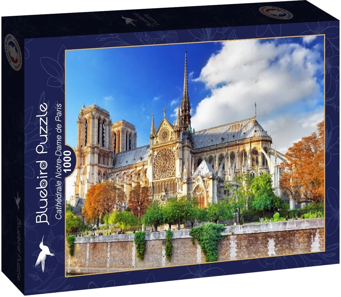 Ontdek de schoonheid van Parijs met deze hoogwaardige puzzel van Bluebird – Kathedraal Notre‑Dame met 1000 stukjes. Ideaal voor ontspanning, het trainen van geduld en het plezier van een voltooid beeld van circa 47,8 × 69 cm.
