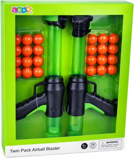 Leuk en veilig actiespel voor kinderen: set van twee Airball Blaster-pistolen met 24 zachte schuimkogeltjes. De blasters hebben een handmatig veermechanisme zonder batterijen, een ergonomische greep en zijn gemaakt van duurzaam plastic. Geweldig voor actief spelen binnen en buiten, stimuleert reactievermogen, oog-handcoördinatie en precisie.