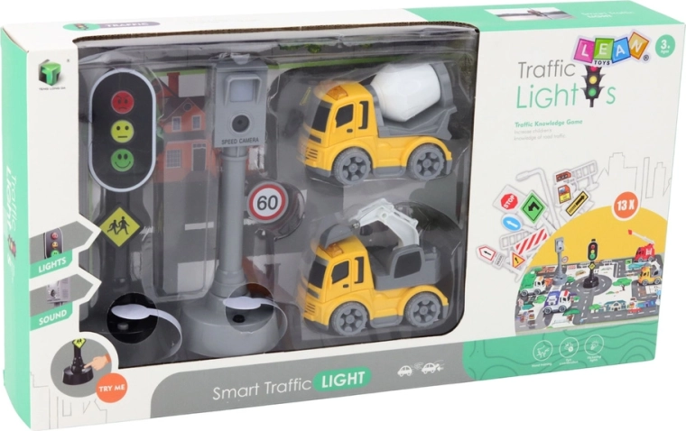 Deze educatieve set combineert realistische verkeerselementen met actievol spel. Het functionerende verkeerslicht met geluid leert kinderen kleuren onderscheiden en het juiste gedrag van voetgangers en bestuurders, terwijl de flitspaal en accessoires het stadsverkeer natuurgetrouw simuleren. Dankzij de meegeleverde speelmat maak je eenvoudig je eigen verkeersscenario’s en een kleine bouwplaats.