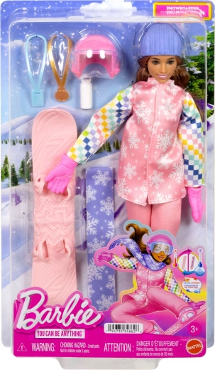 Ontdek de wereld van wintersport met de Barbie snowboardster uit de reeks Barbie Carrière. Een stijlvolle winteroutfit, realistische accessoires en een snowboard met kleurverandering stimuleren creatief spel en prikkelen de verbeelding. Een geweldig cadeau voor kleine liefhebbers van winter, bergen en actieve beweging.