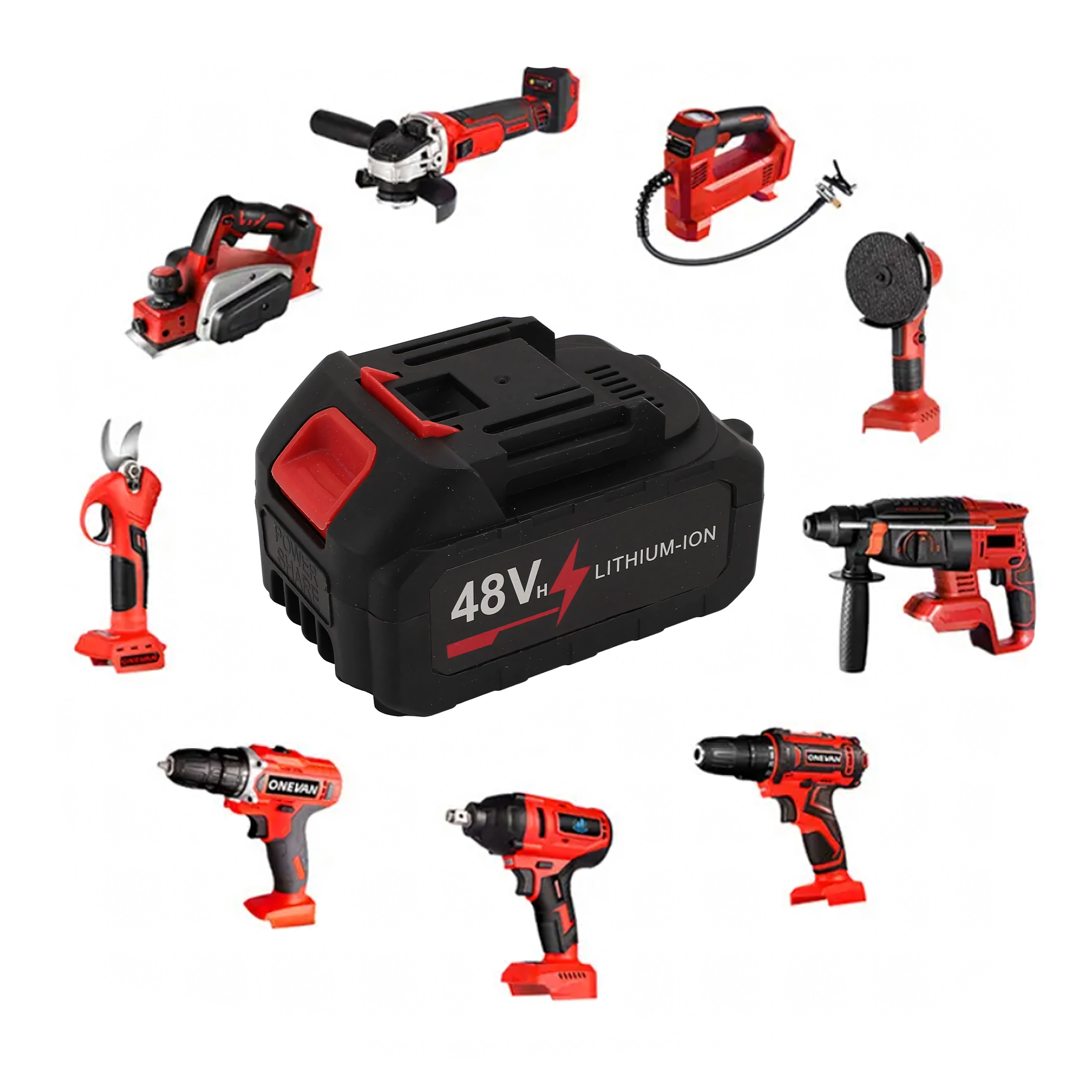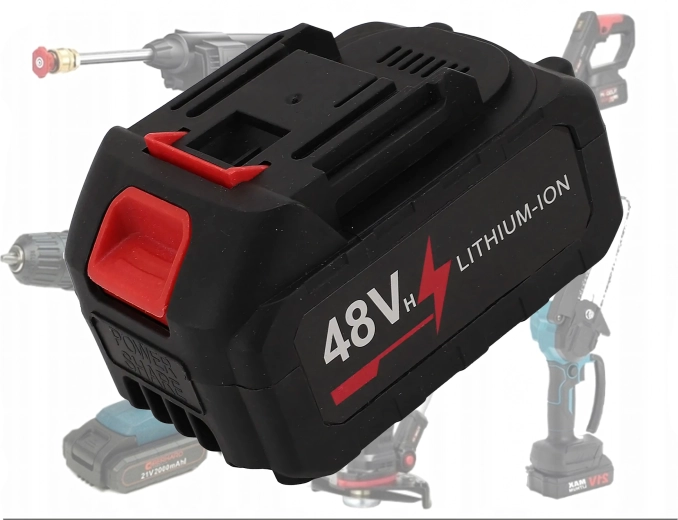 Deze universele 48 V Li‑ion batterij met een grote capaciteit van 6000 mAh voedt jouw snoerloze gereedschap betrouwbaar – van boormachines en slagschroevendraaiers tot mini‑kettingzagen en accu‑hogedrukreinigers. De robuuste behuizing met ventilatieopeningen en schuifvergrendeling zorgt voor een veilige en snelle bevestiging op compatibele tools en laders.