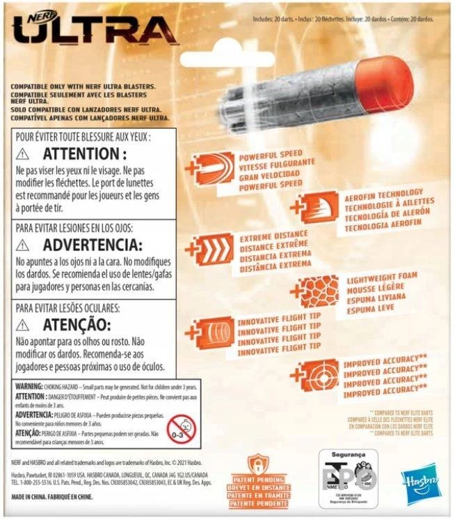 Vul je uitrusting aan voor eindeloze actie met een verpakking van 20 NERF ULTRA-pijlen. Deze kwalitatieve pijlen van HASBRO zijn ontworpen voor maximaal bereik en precisie, ideaal voor kinderen vanaf 8 jaar. De compacte verpakking is makkelijk mee te nemen, zodat je plezier hebt in de tuin, het park of op het strand.