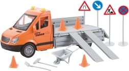 Het platform met neerklapbare rampen maakt eenvoudig laden en lossen van accessoires mogelijk. Kinderen kunnen zo authentieke wegwerkzaamheden en servicediensten naspelen.