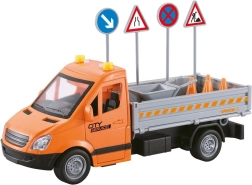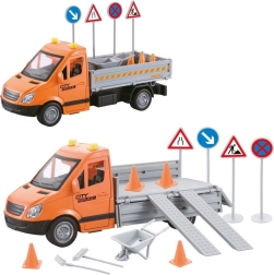 In de verpakking zitten verkeerspylonen, borden, barrières en klein gereedschap, waarmee kinderen eenvoudig hun eigen bouwplaats of wegafsluiting creëren. De robuuste kunststof afwerking is veilig en geschikt voor dagelijks spelen.