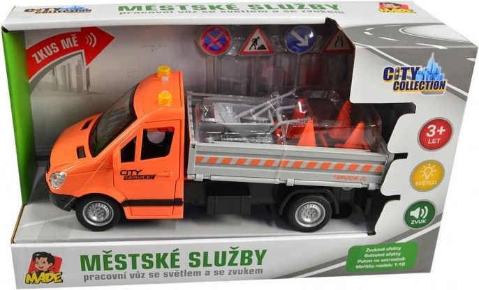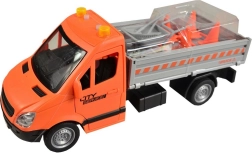 Deze oranje truck met laadplatform en neerklapbare oprijplaten biedt kinderen een authentieke ervaring van stadsdiensten en wegwerkzaamheden. De vliegwielaandrijving zorgt voor een soepele rit zonder batterijen, terwijl realistische details en accessoires de verbeelding en fijne motoriek stimuleren.