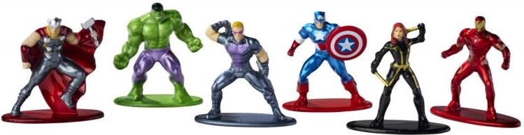- 6 metalen mini-figuurtjes (Captain America, Iron Man, Hulk, Black Widow, Hawkeye, Thor)