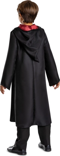 Dit kwaliteitskostuum laat jonge fans van HARRY POTTER de sfeer van Zweinstein zelf beleven. De lange zwarte mantel met capuchon heeft een glad, licht glanzend oppervlak en een contrasterende bordeauxrode binnenkant van de capuchon. Op de borst zit het duidelijk geborduurde wapen van Gryffindor, wat de outfit een authentieke uitstraling geeft en duidelijk verwijst naar de geliefde afdeling.