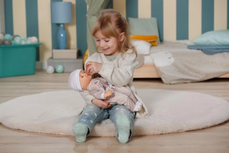 Het zachte stoffen lijfje van de pop voelt prettig aan en is ideaal voor de allerkleinsten. Het bevordert emotionele binding en rustig in slaap vallen.