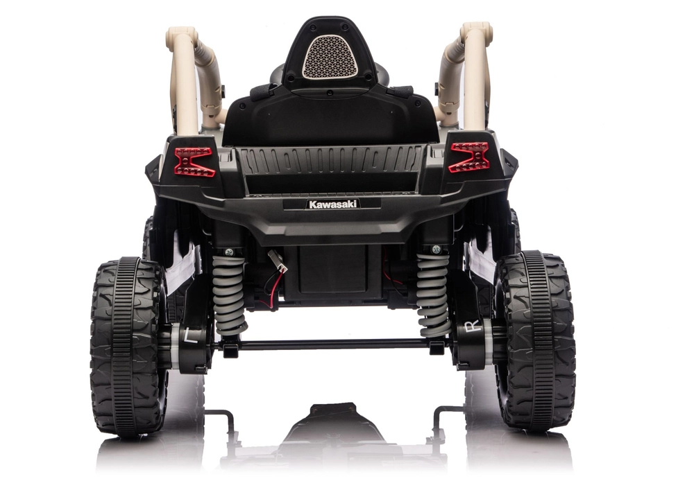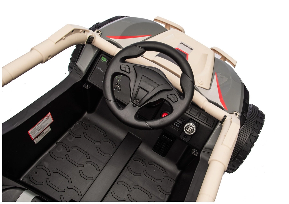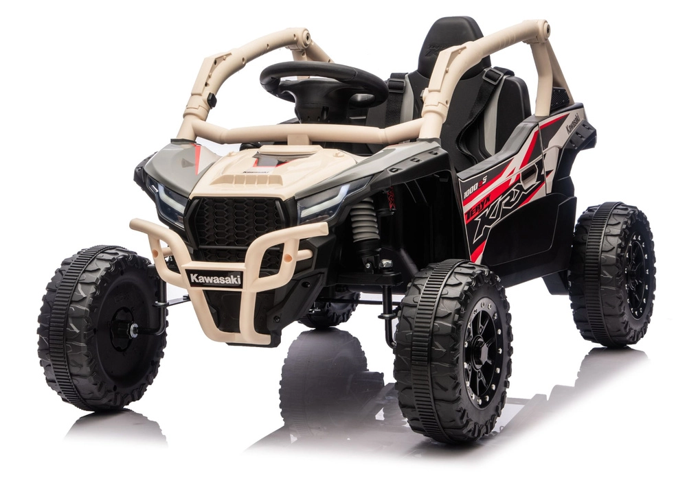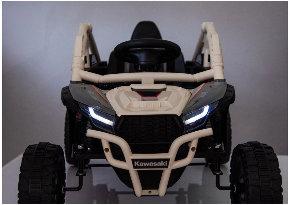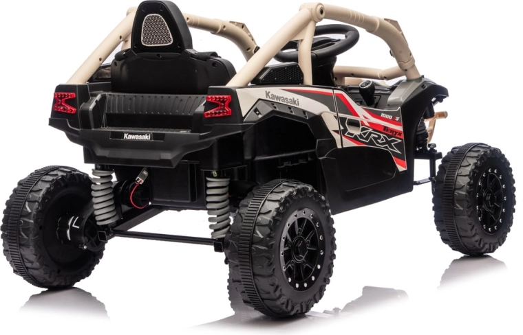 Robuuste elektrische kinderauto geïnspireerd op de off‑road buggy KAWASAKI KRX met een krachtige 24V‑aandrijving, tweepersoons zitplaatsen en terreinbanden met diep profiel voor plezierig buitenrijden. Inclusief beschermkooi, geoptimaliseerde vering en een realistisch stuur met bedienelementen voor veilig en avontuurlijk spel.