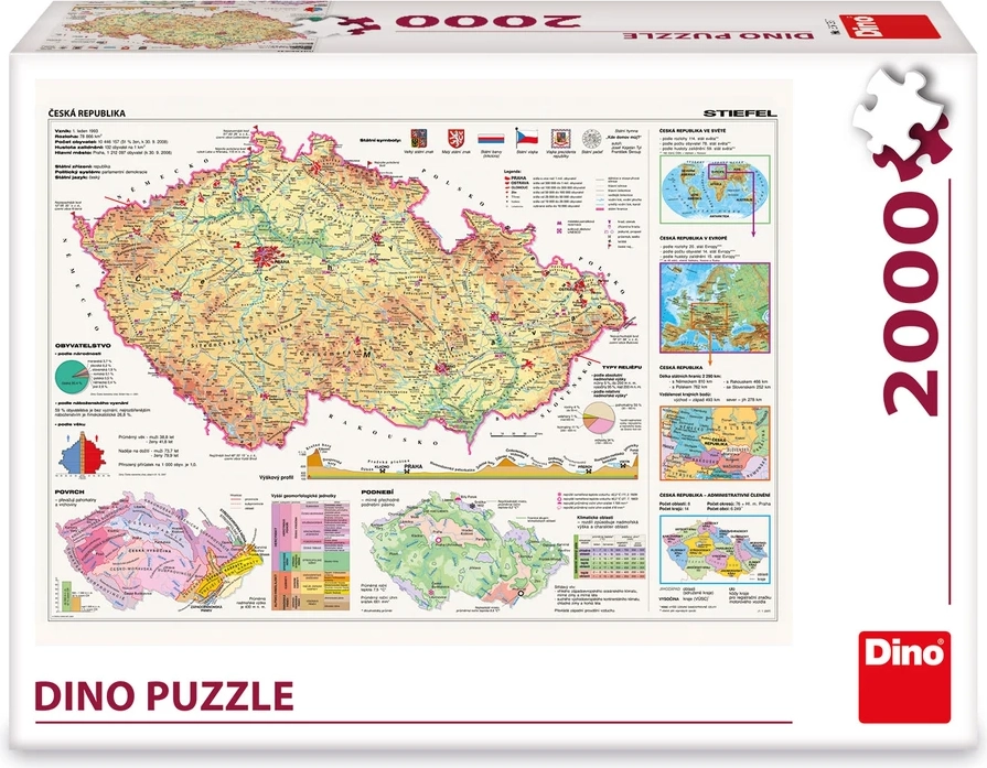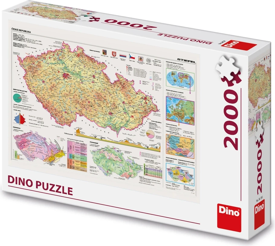 De grote puzzel met het motief van de kaart van de Tsjechische Republiek is een ideale keuze voor geografie-liefhebbers, voor samen puzzelen met het gezin en ook als wanddecoratie. De nauwkeurig gedrukte kaart met overzichtelijke details laat je steden, regio’s en bezienswaardigheden van ons land ontdekken tijdens het leuke leggen.