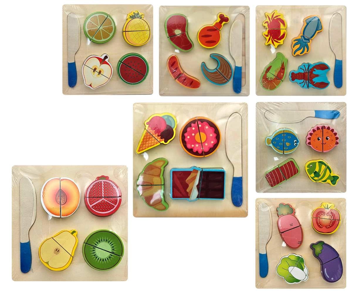 Een speelse set houten etenswaren met klittenbandsluiting brengt kinderen plezier én leren. De delen kunnen gemakkelijk “gesneden” en weer samengevoegd worden, zodat kleine koks hun fijne motoriek, coördinatie en verbeeldingskracht oefenen. Er zijn meerdere varianten beschikbaar, de prijs is per stuk. Geschikt voor kinderen vanaf 3 jaar.