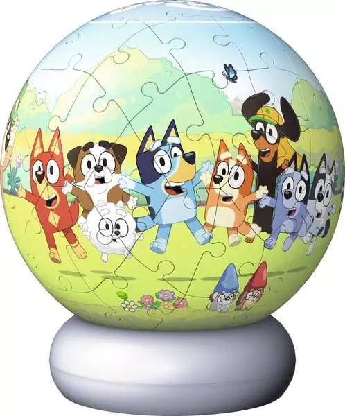 Ontdek de leuke lichtgevende 3D-puzzel BLUEY in de nachteditie, die een stralende bol met een diameter van 13 cm vormt. De speciaal gebogen kunststof stukjes klikken stevig in elkaar zonder lijm; je kunt op afbeelding of op nummer puzzelen. Een ideaal cadeau voor kinderen en Bluey-fans dat creativiteit, geduld en puzzelplezier combineert.
