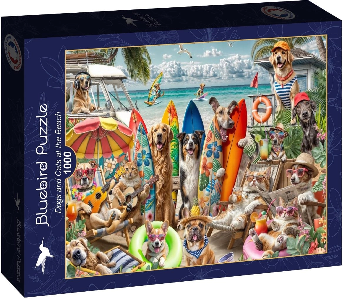 Geniet van ontspanning met een kwalitatieve puzzel met een motief van schattige huisdieren aan zee. Deze puzzel met 1000 stukjes biedt een prachtig gedetailleerd motief, een prettig formaat voor comfortabel puzzelen en is een ideale keuze voor dierenliefhebbers en gezellige momenten met het gezin.