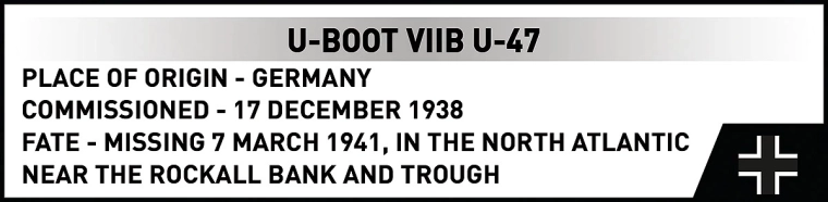 Ontdek het zorgvuldig vervaardigde model van de U-47 type VIIB, een van de bekendste onderzeeërs uit de Tweede Wereldoorlog. De bouwset in 1:300 legt silhouet, proporties en karakteristieke details natuurgetrouw vast, inclusief de commandotoren met het symbool Stier van Scapa Flow. Dankzij de compacte afmetingen past hij perfect in een vitrinekast, op een bureau of in een collectie maritieme modellen.