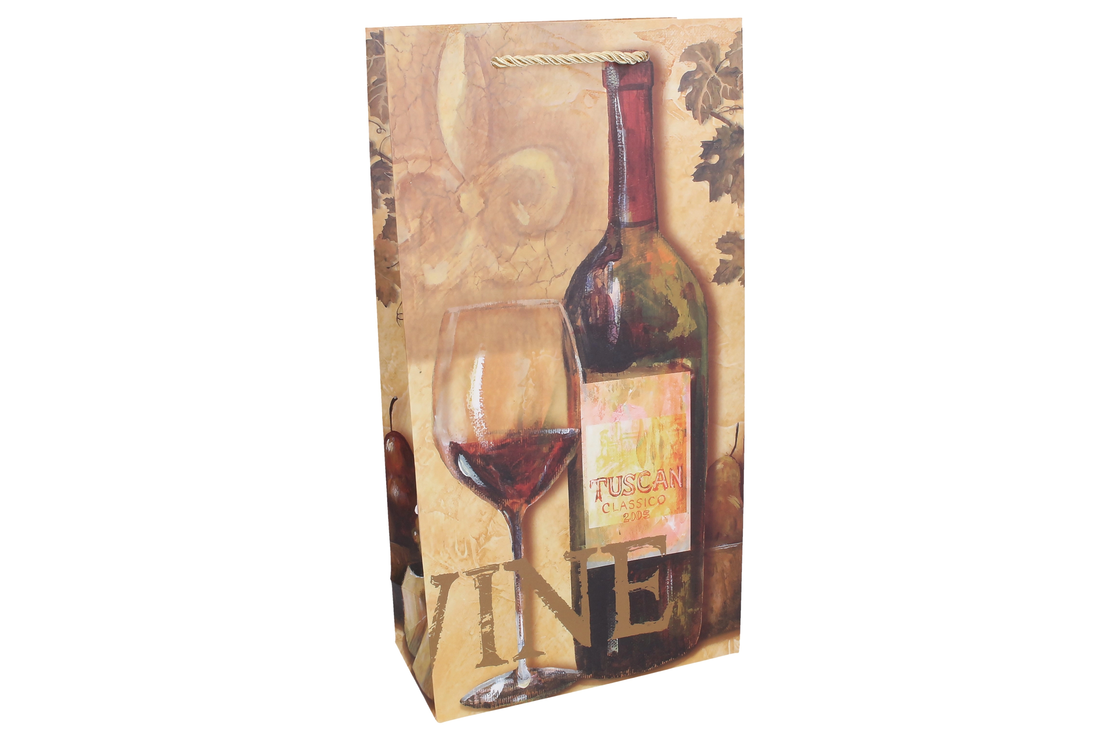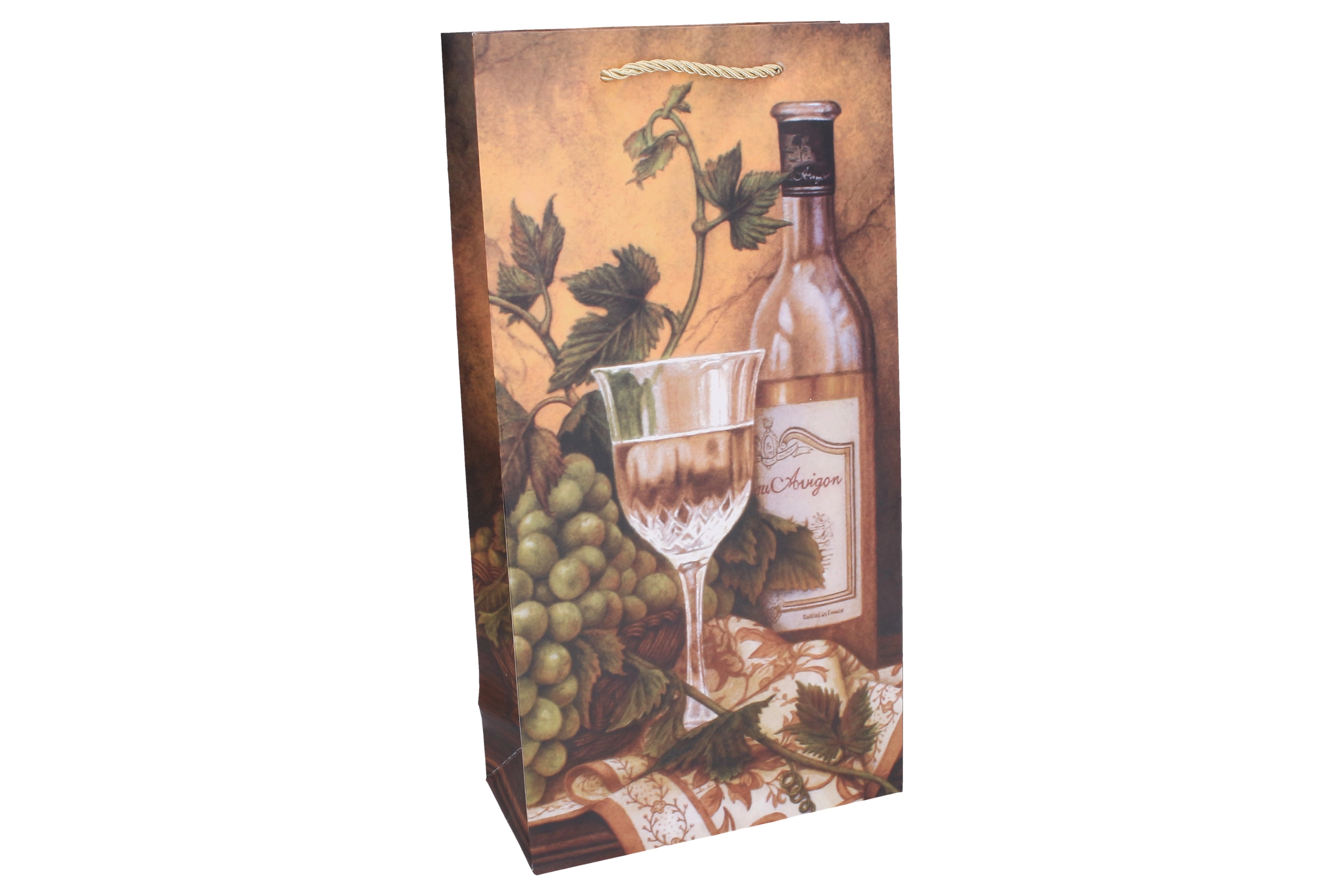 Een elegante cadeautas voor twee flessen, ideaal voor wijn, distillaten of delicatessen. Biedt praktische afmetingen van 18 × 35 × 9 cm en een universeel design voor het hele jaar door gebruik. De stevige uitvoering en sterke handgrepen zorgen voor veilig transport, terwijl het stijlvolle uiterlijk de bijzonderheid van het geschenk benadrukt.