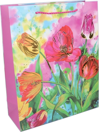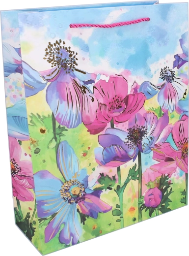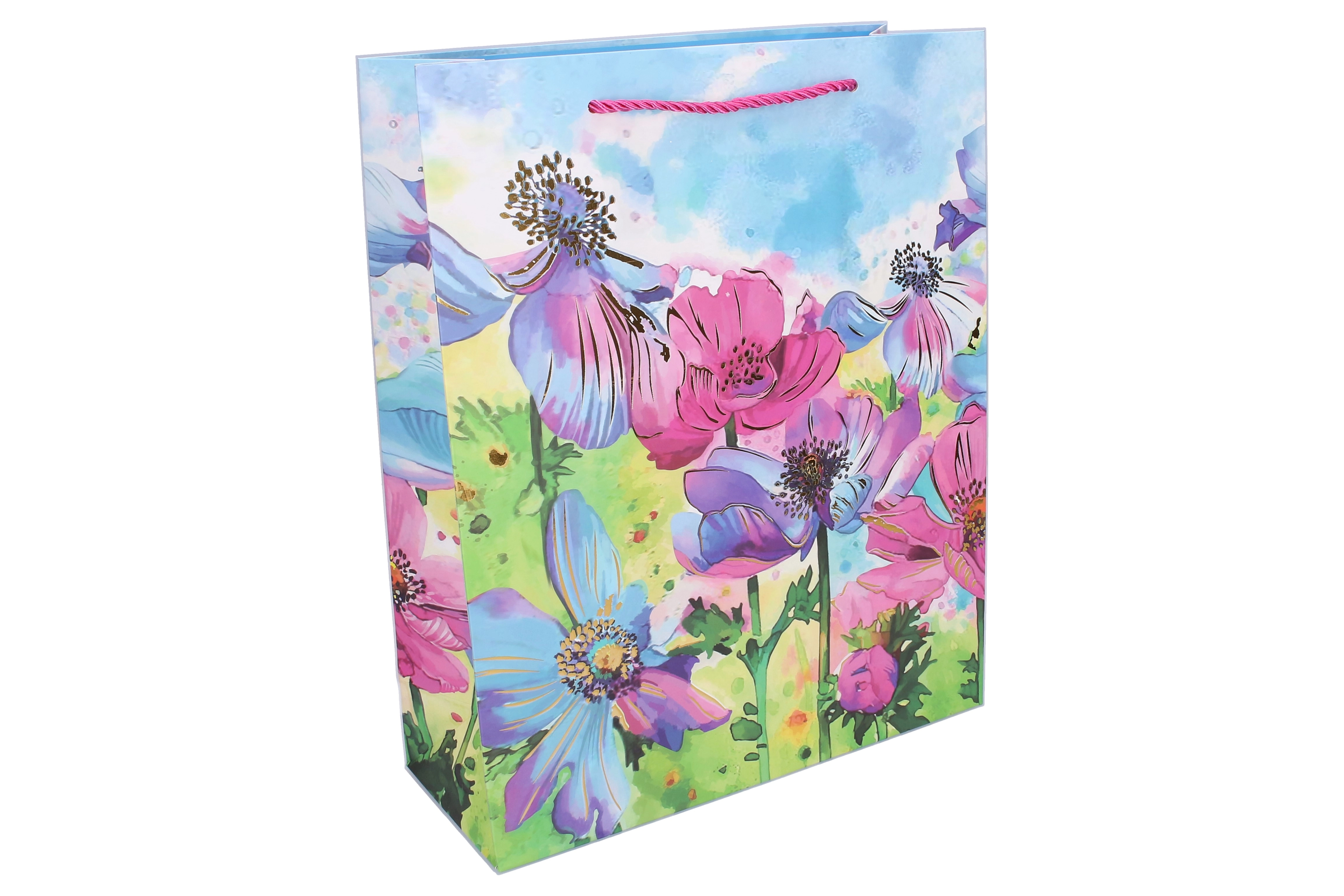 Geef je cadeaus extra flair met deze kwalitatieve papieren tas in maat M. De glanzende bloemenprint en het stevige koordhandvat zorgen ervoor dat je cadeau er geweldig uitziet en veilig vervoerd wordt. De tas is geschikt voor het hele jaar door gebruik – van verjaardagen en feestdagen tot kleine attenties.