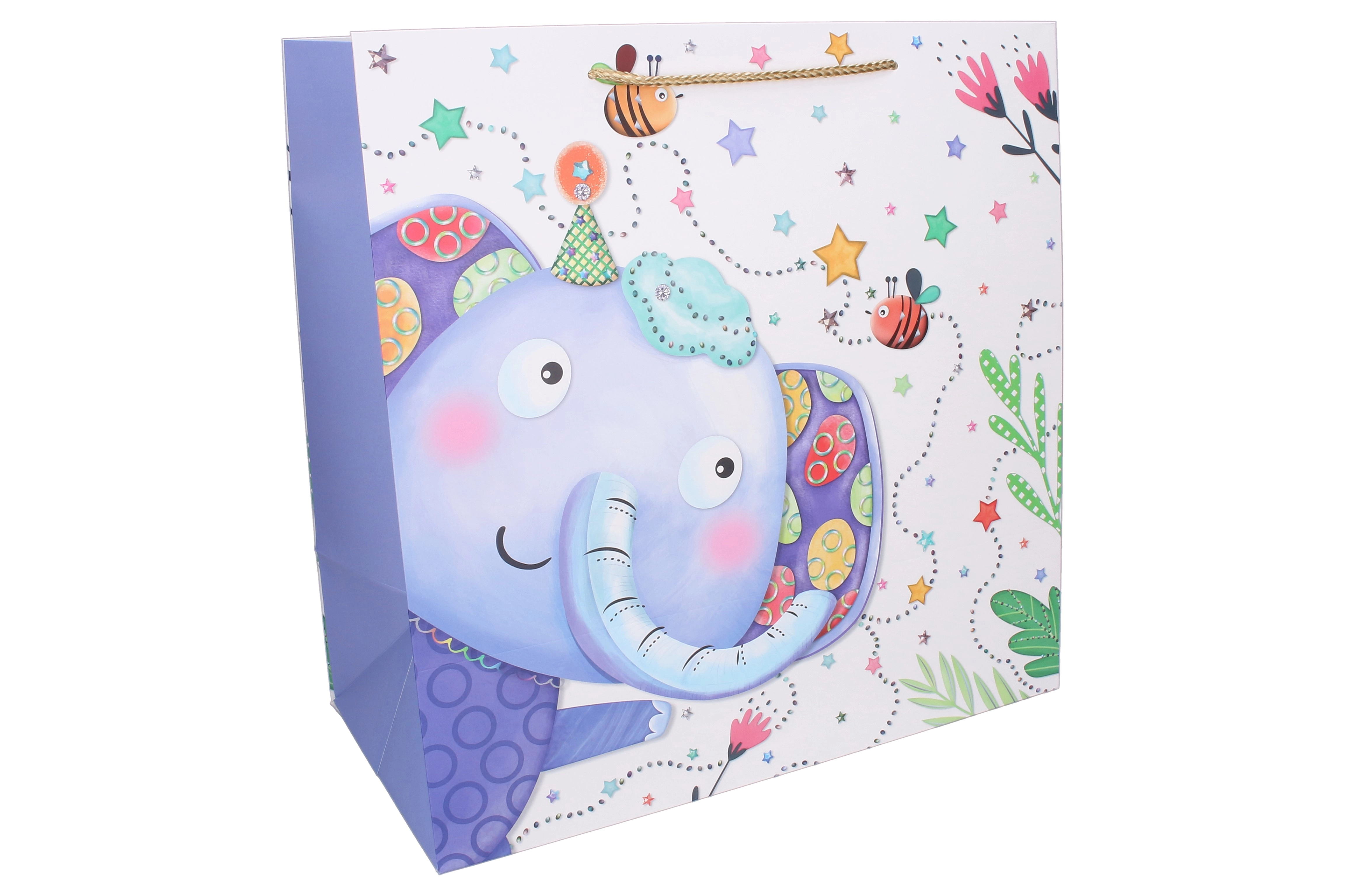 Breng elk cadeaumoment tot leven met een kleurrijke kindertas met speelse dierenmotieven. De tas van kwalitatief papier met versterkte zijkanten en stevige koordhandgrepen draagt moeiteloos speelgoed, boeken en andere verrassingen. Dankzij frisse kleuren en lieve illustraties wordt cadeaus inpakken snel, mooi en zorgeloos.