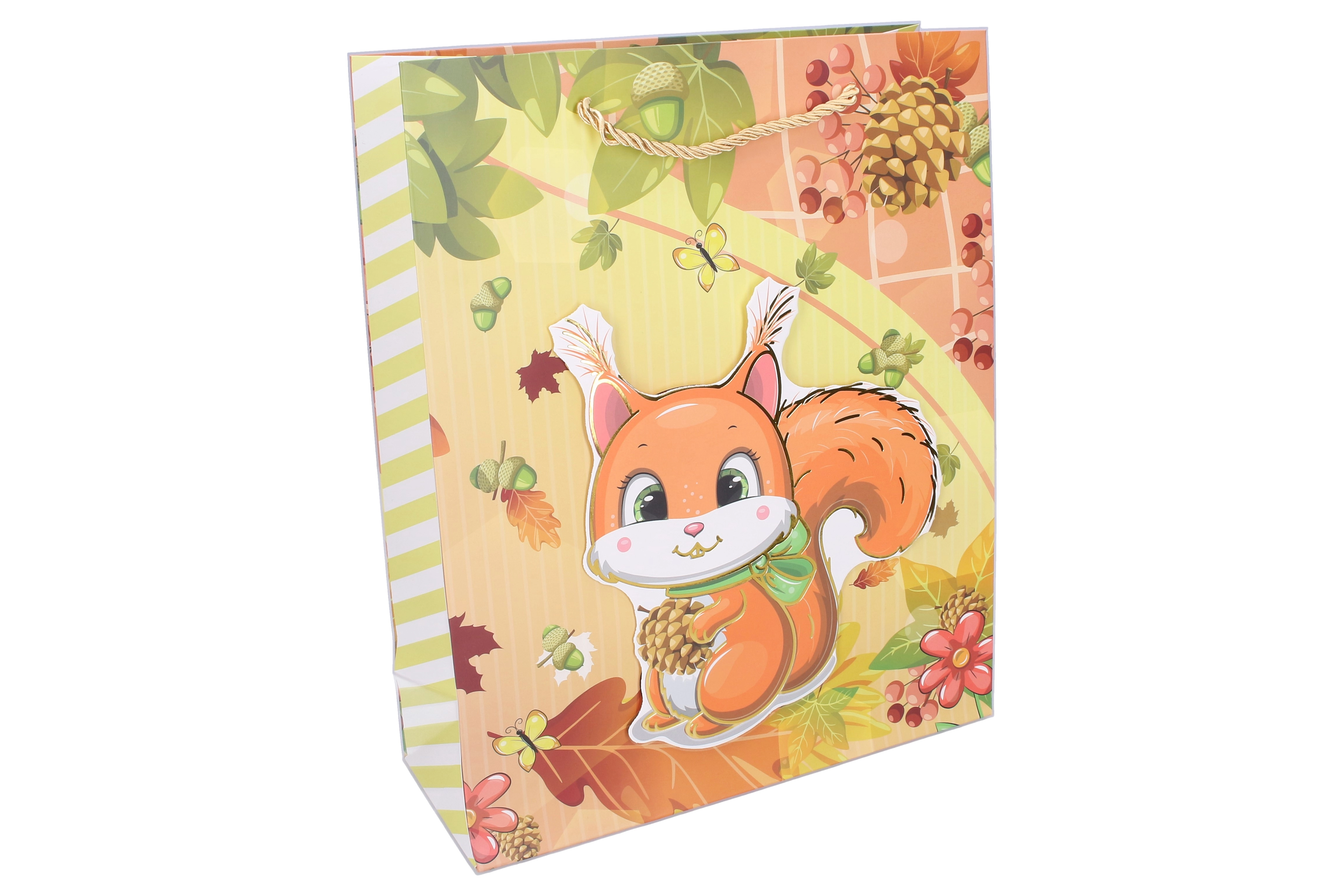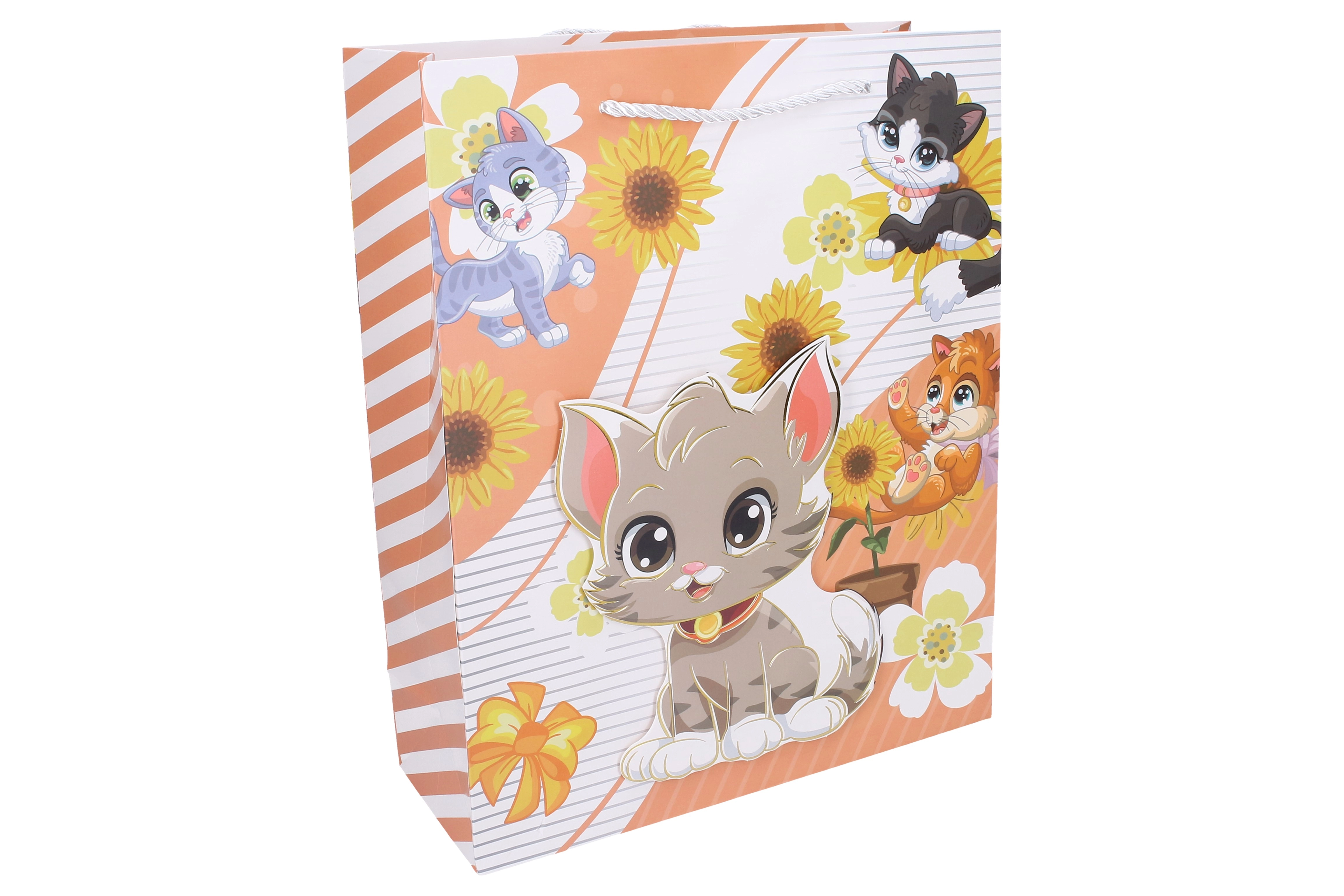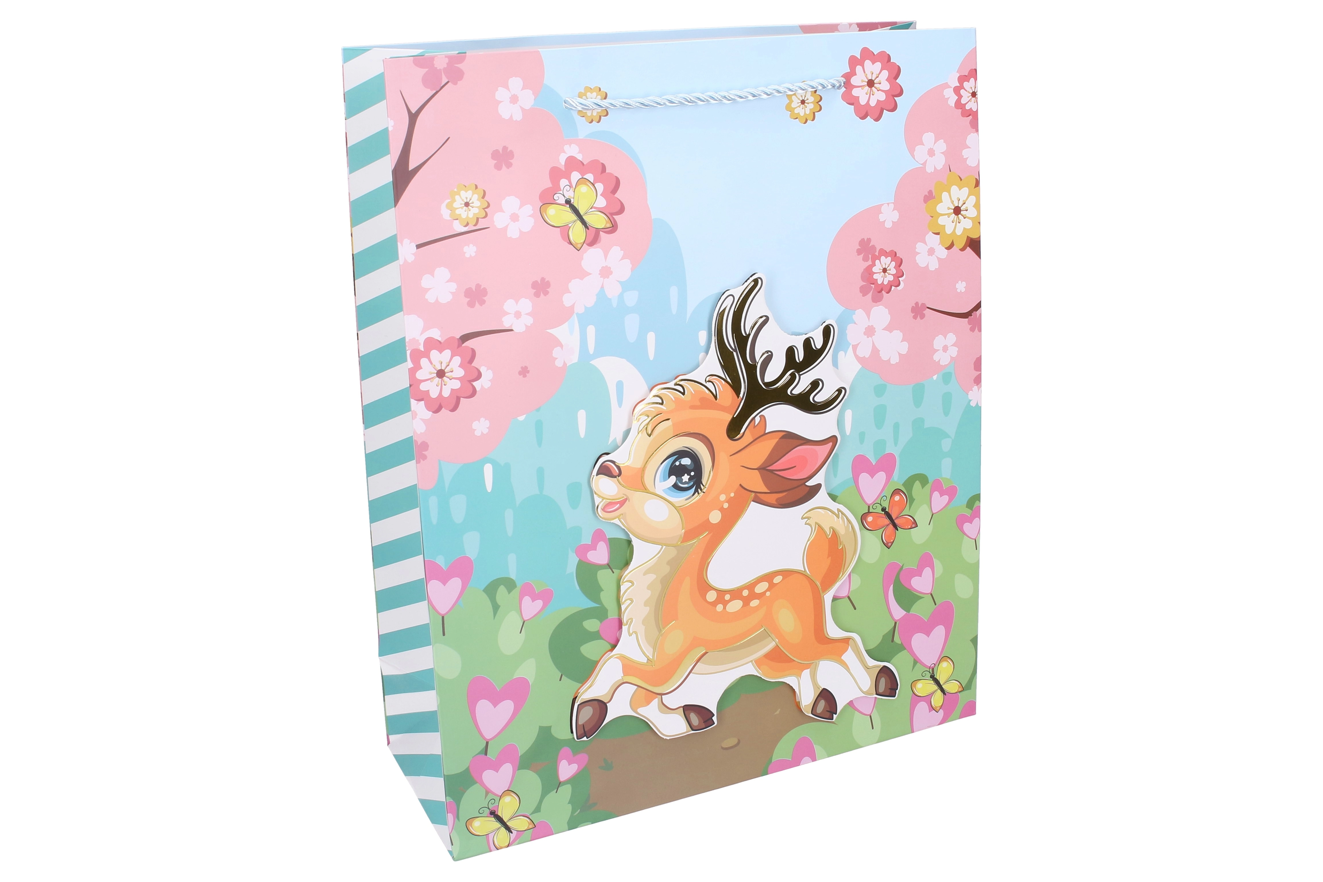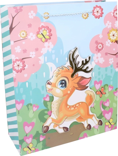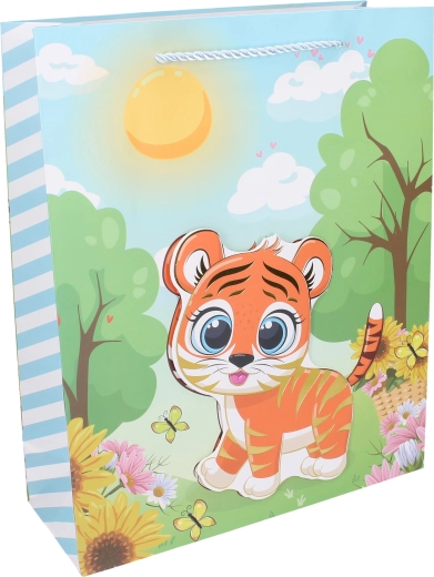 Een schattige cadeautas voor kinderen in maat L met afmetingen 30 × 41,5 × 12 cm en dierenmotieven zorgt voor plezier bij elke cadeauoverhandiging. Kies uit 4 varianten – kat, hert, tijger en eekhoorn.