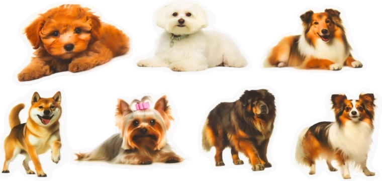 Realistische, kleurrijke prints van hondenrassen geven je decoraties een professionele en aantrekkelijke uitstraling.