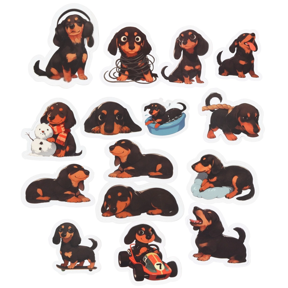 - Diverse poses en stijlen van teckels, die-cut met witte rand