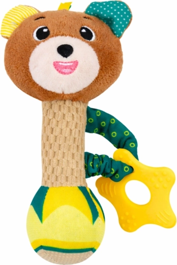 Schattige pluchen rammelaar in de vorm van een beertje combineert een rammelaar, pieper en zachte bijtring voor verlichting bij doorkomende tandjes. Dankzij de zachte materialen, makkelijke grip en zachte geluiden stimuleert het de zintuigen, coördinatie en houdt het je baby bezig thuis en onderweg.