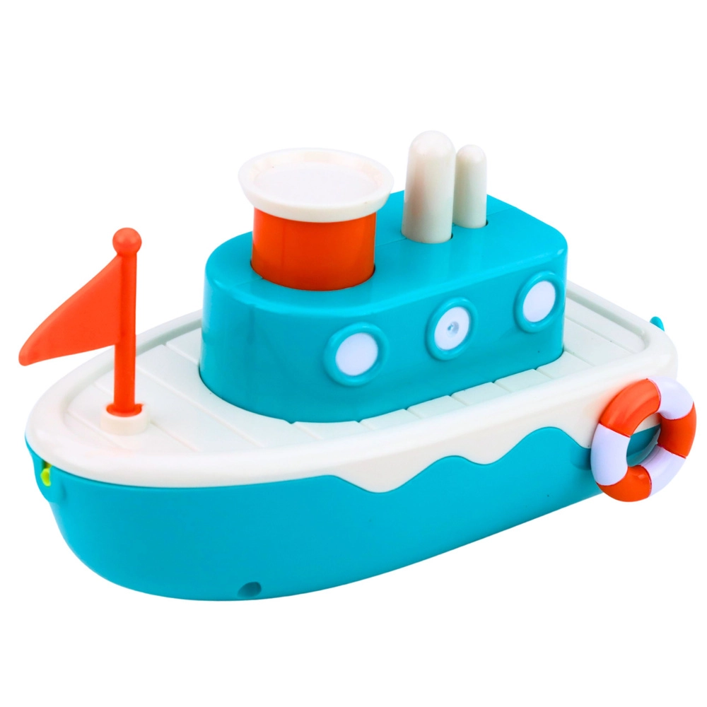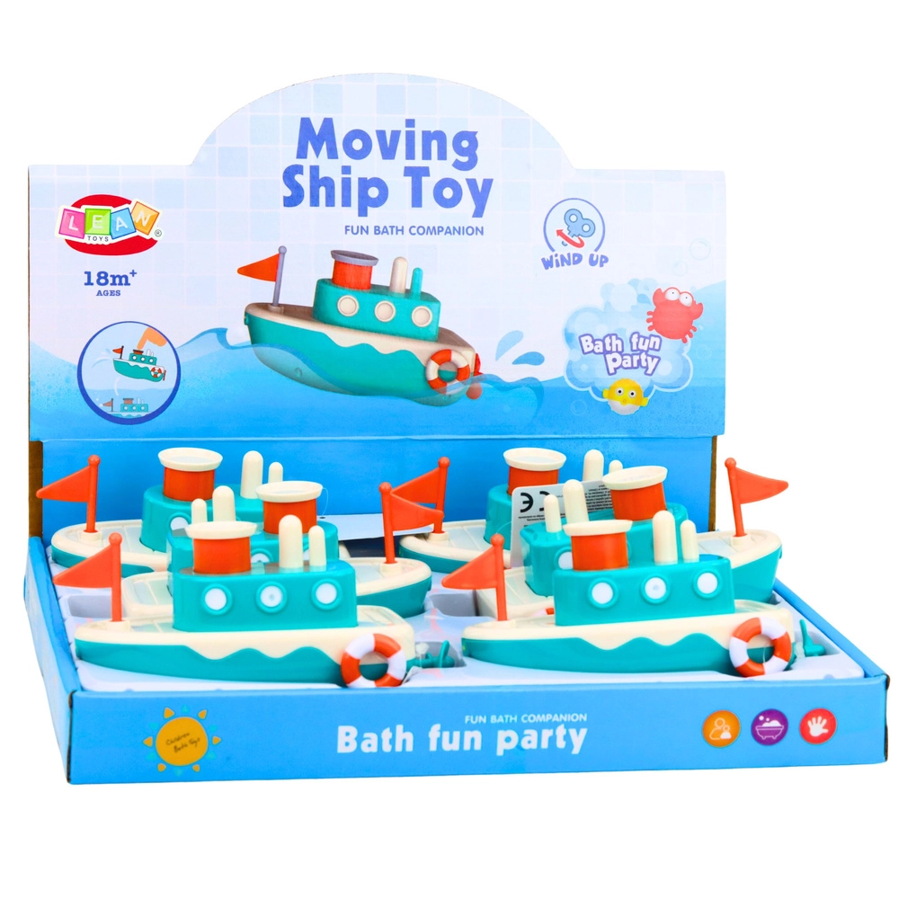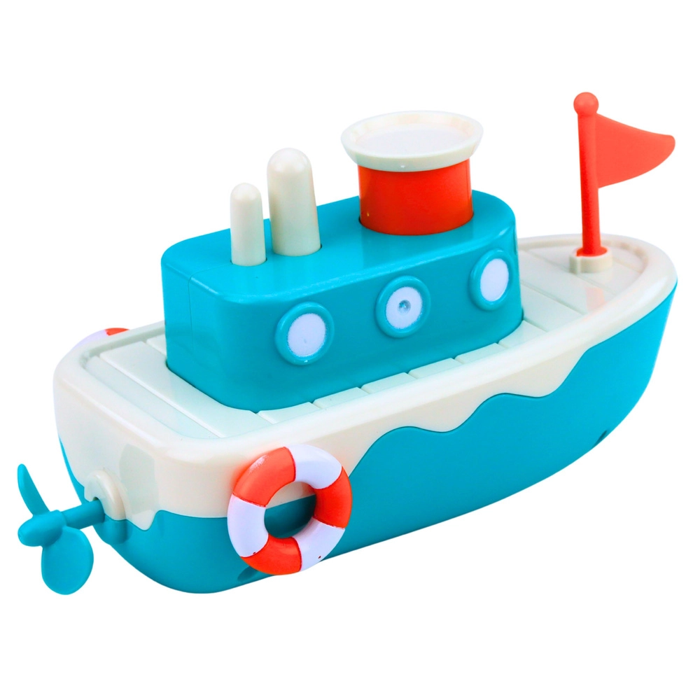 Maak van badtijd een leuk avontuur met dit opwindbare badbootje dat zelf over het water vaart en bij een druk op de knop water sproeit. Gemaakt van veilig plastic in pasteltinten, stimuleert het de fijne motoriek en oog-handcoördinatie en is het ideaal voor bad, douche of ondiep water.